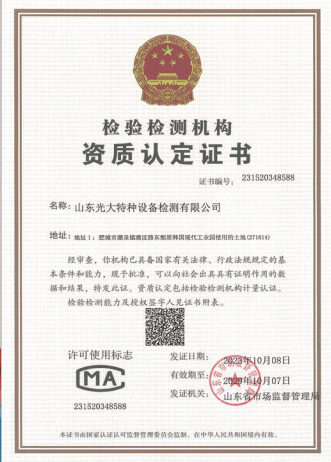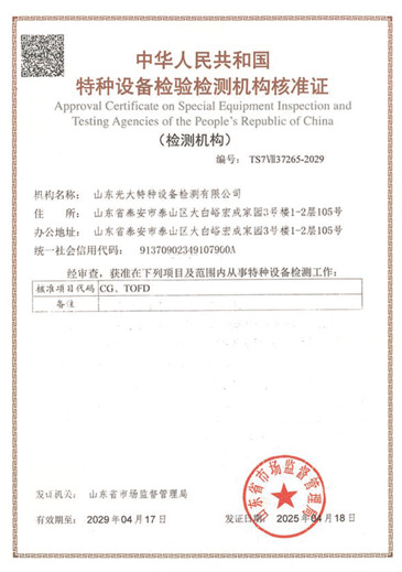【特種設(shè)備檢驗(yàn)資質(zhì)和檢驗(yàn)范圍】 RD2 定期檢驗(yàn):第一、二、三類固定式壓力容器(不含超高壓容器,大型高壓者器、球形儲(chǔ)罐) RD3定期檢驗(yàn):第一、二類固定式壓力齊器(不含球形儲(chǔ)罐) DD2定期檢驗(yàn):公用管道 DD3定用檢:工業(yè)管道 QD2 定期檢驗(yàn):塔式起重機(jī)、流動(dòng)式起重機(jī),門座式起重機(jī),升降機(jī),纜索式起重機(jī)、梔桿式起重機(jī),額定起重量小于 10T(不含10T)的橋式起看機(jī)和門式起重機(jī) QD3定期檢驗(yàn):流動(dòng)式起重機(jī),塔式起重機(jī),升降機(jī) ND1定期檢驗(yàn):場(chǎng)(廠)內(nèi)專用機(jī)動(dòng)車輛 ...